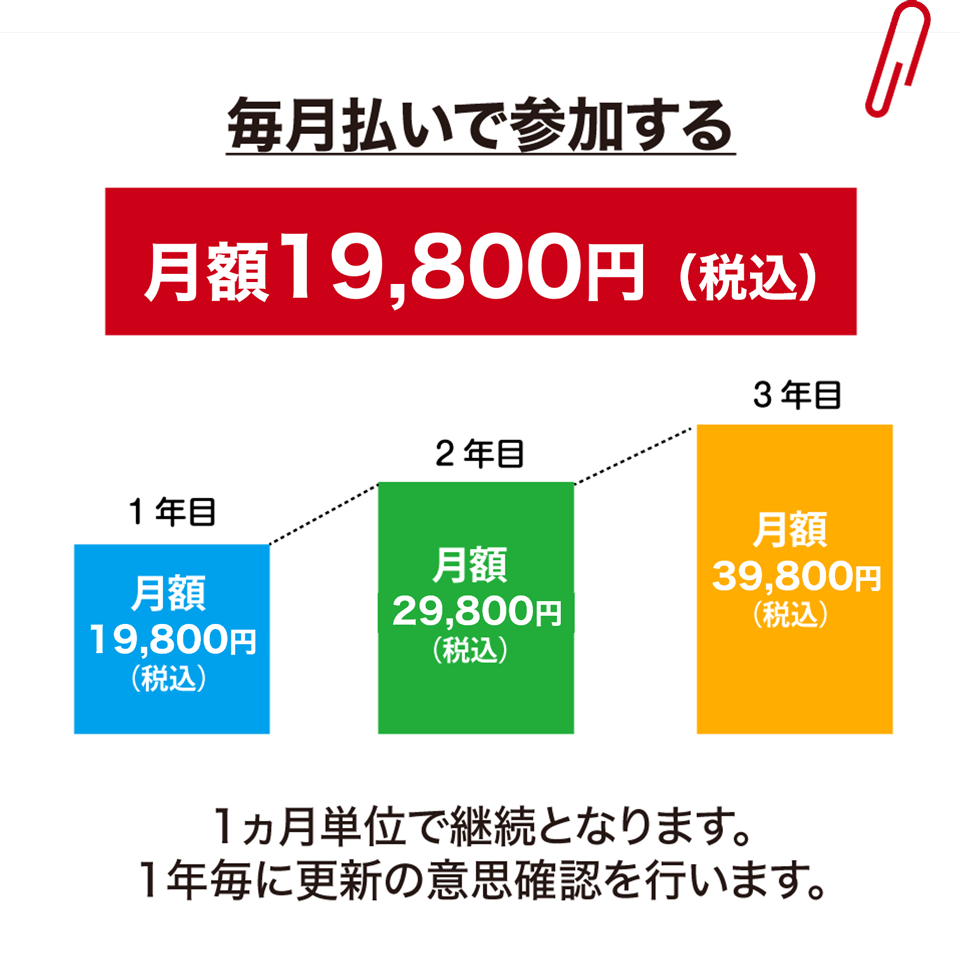 ●クレジットカード課金日:登録時に当月分を課金頂き、初回課金日より1ヶ月毎に翌月分が自動課金されます。