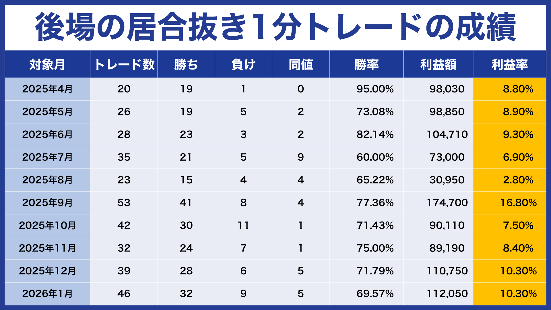 後場の居合抜き1分トレードの成績の